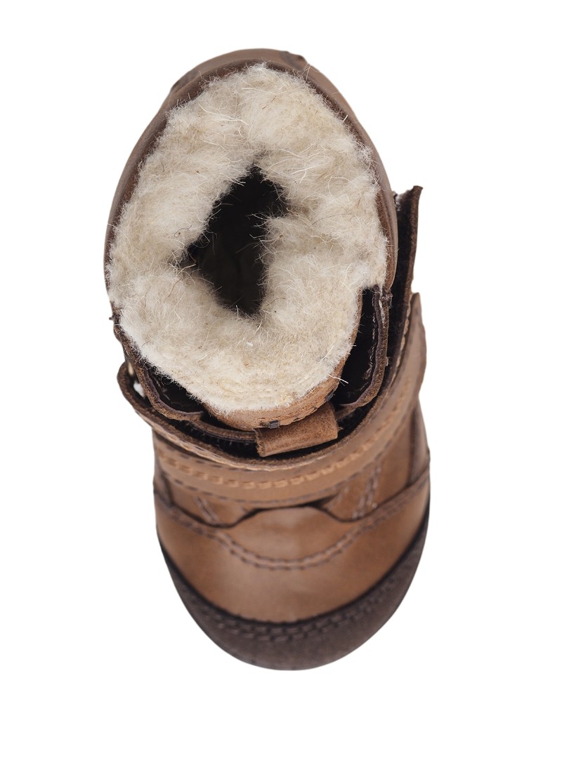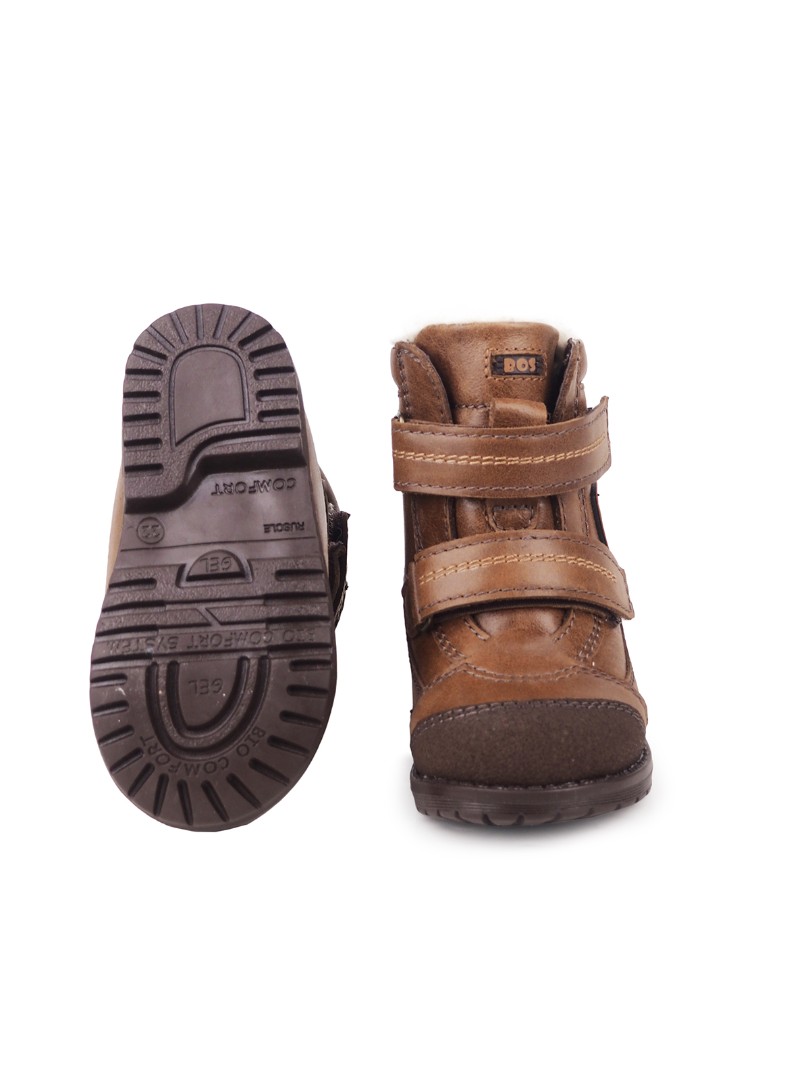 Утепленные ботинки из натуральной кожи премиум-класса и подкладки из шерстяного меха, согреют ножки ребенка. При выборе модели с шерстяным мехом, за счет плотности меха, рекомендуем выбирать детскую обувь на 1-1,5 размера больше. Внутри - съёмная стелька с активным супинатором. Жесткий задник надежно фиксирует голеностоп, а липучка "Велкро" помогает регулировать полноту. Умерено эластичная и прочная подошва с каблуком Томаса не скользит и хорошо поглощает ударную нагрузку, что позволяет ножкам ребенка не уставать.