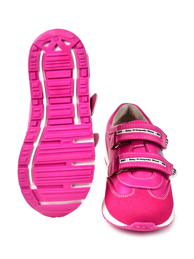 Кроссовки самая популярная обувь у детей. Ортопедические кроссовки для девочки выполнены из натуральной кожи премиум-класса внутри и снаружи, обеспечат комфорт ножкам ребенка. Внутри - съёмная стелька с активным супинатором. Жесткий задник надежно фиксирует голеностоп. Липучки "Велкро" регулируют полноту. Умерено эластичная и прочная подошва не скользит и хорошо поглощает ударную нагрузку во время прогулок, что позволяет ножкам ребенка не уставать.
