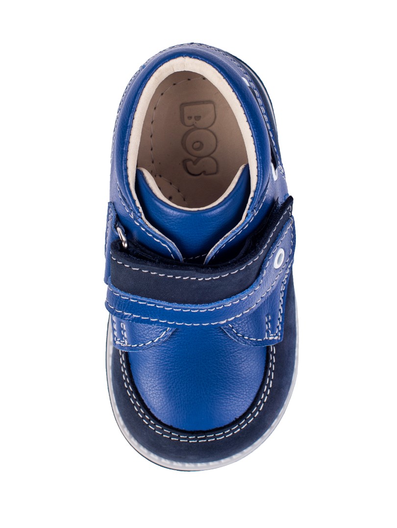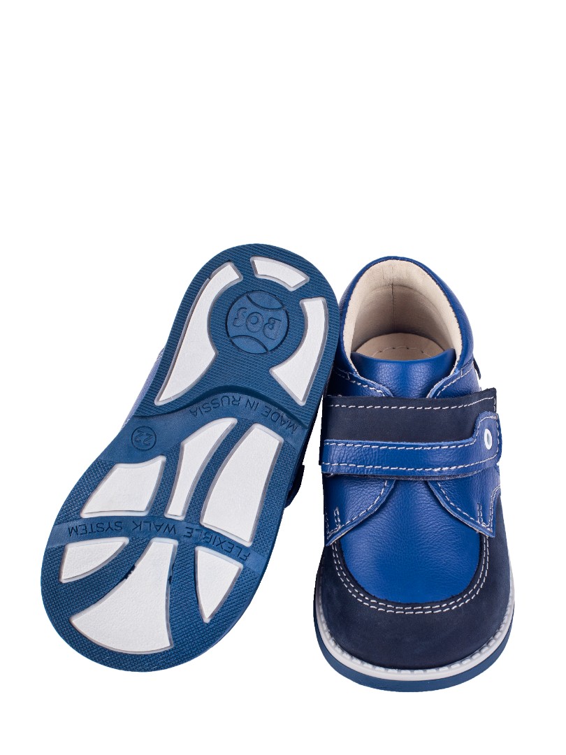 Купить практичные стильные мокасины для мальчика предлагает BOS, фабрика детской обуви. Модель из синей и голубой кожи.