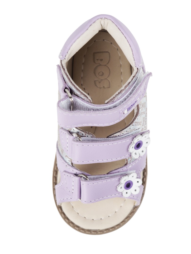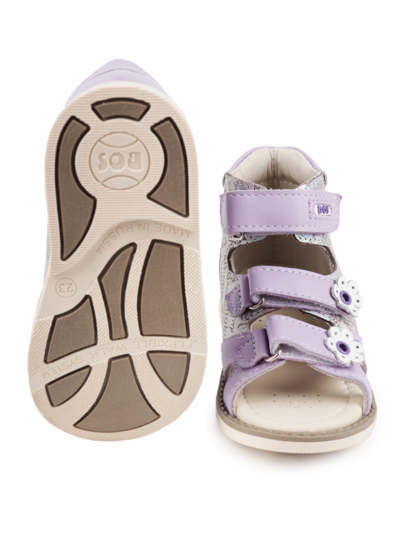 Ортопедические сандалии для профилактики и коррекции плоскостопия и плосковальгусной установки стоп. Широкий, устойчивый каблук специальной конфигурации - каблук Томаса. Каблук продлен с внутренней стороны до середины стопы, чтобы исключить заваливание стопы вовнутрь, так называемая косолапость, или вальгусная деформация. Анатомическая стелька с супинатором для правильного формирования свода стопы. Задник максимальной жесткости с удлиненным крылом надежно стабилизирует голеностопный сустав во время ходьбы. Упругая, умеренно-эластичная подошва, имеющая перекат, позволяет повторить естественное движение стопы при ходьбе для правильного распределения нагрузки на опорно-двигательный аппарат ребенка.