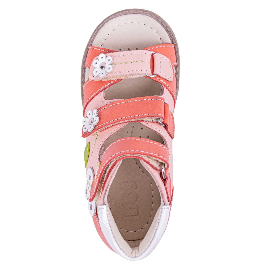 Ортопедические сандалии для профилактики и коррекции плоскостопия и плосковальгусной установки стоп. Широкий, устойчивый каблук специальной конфигурации - каблук Томаса. Каблук продлен с внутренней стороны до середины стопы, чтобы исключить заваливание стопы вовнутрь, так называемая косолапость, или вальгусная деформация. Анатомическая стелька с супинатором для правильного формирования свода стопы. Задник максимальной жесткости с удлиненным крылом надежно стабилизирует голеностопный сустав во время ходьбы. Упругая, умеренно-эластичная подошва, имеющая перекат, позволяет повторить естественное движение стопы при ходьбе для правильного распределения нагрузки на опорно-двигательный аппарат ребенка.
