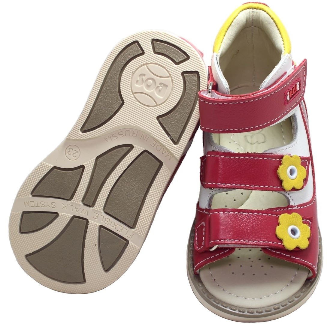 Ортопедические сандалии для профилактики и коррекции плоскостопия и плосковальгусной установки стоп. Широкий, устойчивый каблук специальной конфигурации - каблук Томаса. Каблук продлен с внутренней стороны до середины стопы, чтобы исключить заваливание стопы вовнутрь, так называемая косолапость, или вальгусная деформация. Анатомическая стелька с супинатором для правильного формирования свода стопы. Задник максимальной жесткости с удлиненным крылом надежно стабилизирует голеностопный сустав во время ходьбы. Упругая, умеренно-эластичная подошва, имеющая перекат, позволяет повторить естественное движение стопы при ходьбе для правильного распределения нагрузки на опорно-двигательный аппарат ребенка.