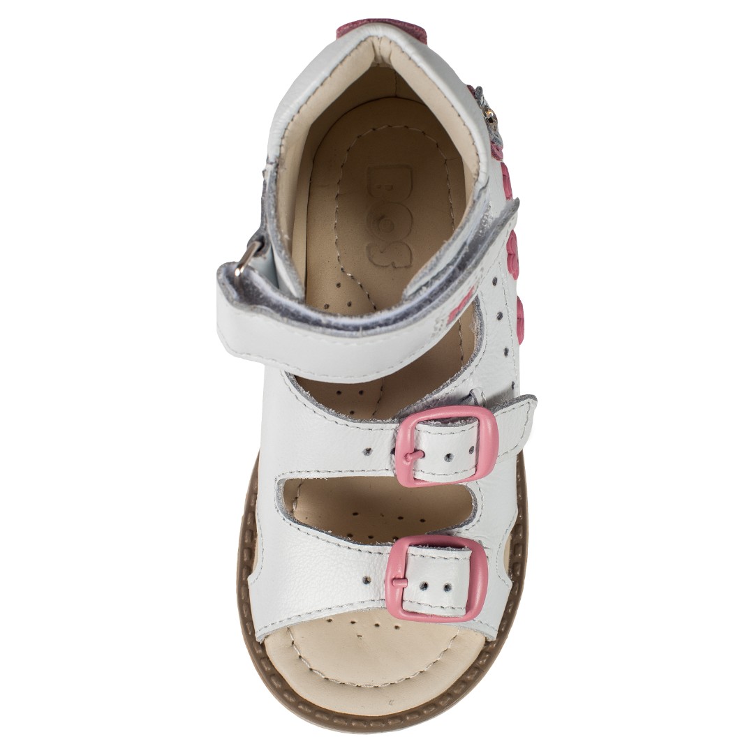 Ортопедические сандалии для профилактики и коррекции плоскостопия и плосковальгусной установки стоп. Широкий, устойчивый каблук специальной конфигурации - каблук Томаса. Каблук продлен с внутренней стороны до середины стопы, чтобы исключить заваливание стопы вовнутрь, так называемая косолапость, или вальгусная деформация. Анатомическая стелька с супинатором для правильного формирования свода стопы. Задник максимальной жесткости с удлиненным крылом надежно стабилизирует голеностопный сустав во время ходьбы. Упругая, умеренно-эластичная подошва, имеющая перекат, позволяет повторить естественное движение стопы при ходьбе для правильного распределения нагрузки на опорно-двигательный аппарат ребенка.