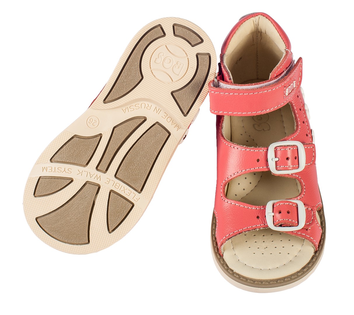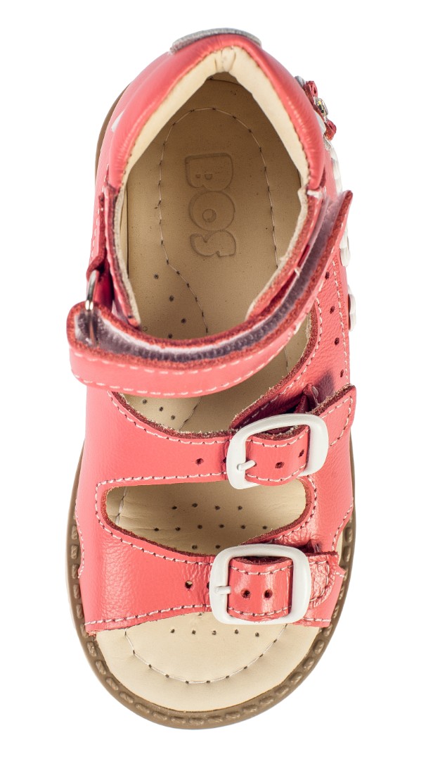 Ортопедические сандалии для профилактики и коррекции плоскостопия и плосковальгусной установки стоп. Широкий, устойчивый каблук специальной конфигурации - каблук Томаса. Каблук продлен с внутренней стороны до середины стопы, чтобы исключить заваливание стопы вовнутрь, так называемая косолапость, или вальгусная деформация. Анатомическая стелька с супинатором для правильного формирования свода стопы. Задник максимальной жесткости с удлиненным крылом надежно стабилизирует голеностопный сустав во время ходьбы. Упругая, умеренно-эластичная подошва, имеющая перекат, позволяет повторить естественное движение стопы при ходьбе для правильного распределения нагрузки на опорно-двигательный аппарат ребенка.