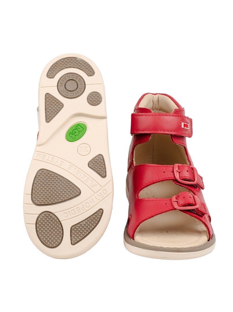 Ортопедические сандалии для профилактики и коррекции плоскостопия и плосковальгусной установки стоп. Широкий, устойчивый каблук специальной конфигурации - каблук Томаса. Каблук продлен с внутренней стороны до середины стопы, чтобы исключить заваливание стопы вовнутрь, так называемая косолапость, или вальгусная деформация. Анатомическая стелька с супинатором для правильного формирования свода стопы. Задник максимальной жесткости с удлиненным крылом надежно стабилизирует голеностопный сустав во время ходьбы. Упругая, умеренно-эластичная подошва, имеющая перекат, позволяет повторить естественное движение стопы при ходьбе для правильного распределения нагрузки на опорно-двигательный аппарат ребенка.