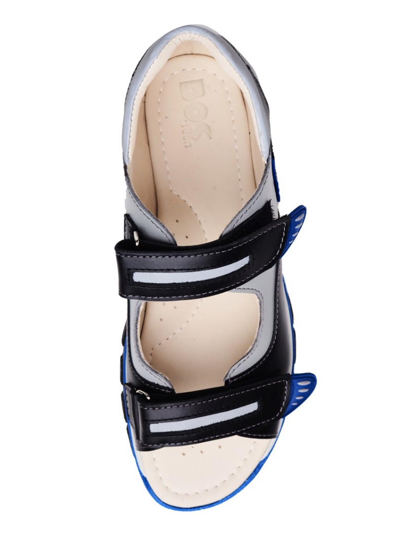 Сандалии для профилактики плоскостопия и плосковальгусной установки стоп.  Анатомическая стелька с супинатором для правильного формирования свода стопы. Задник максимальной жесткости с удлиненным крылом надежно стабилизирует голеностопный сустав во время ходьбы. Упругая, умеренно-эластичная подошва, имеющая перекат, позволяет повторить естественное движение стопы при ходьбе для правильного распределения нагрузки на опорно-двигательный аппарат ребенка.