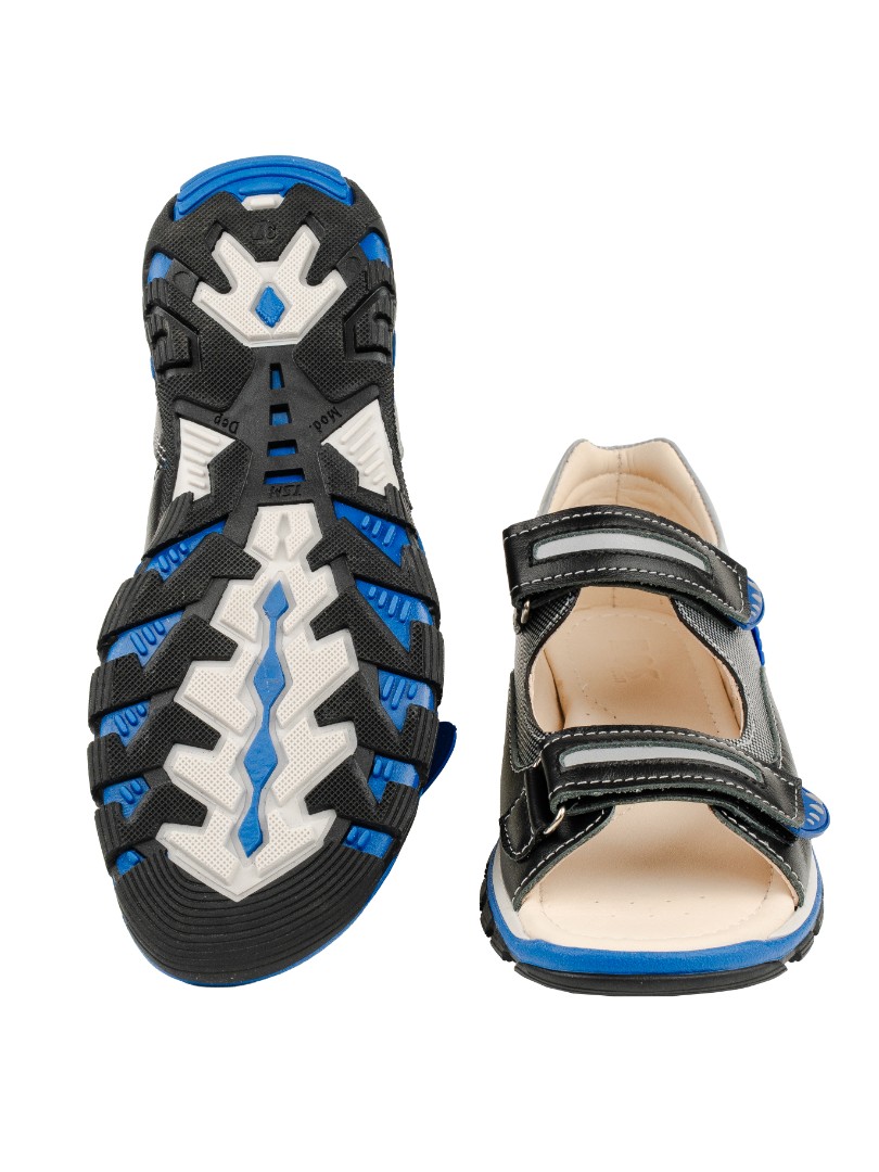 Сандалии для профилактики плоскостопия и плосковальгусной установки стоп. Анатомическая стелька с супинатором для правильного формирования свода стопы. Задник максимальной жесткости с удлиненным крылом надежно стабилизирует голеностопный сустав во время ходьбы. Упругая, умеренно-эластичная подошва, имеющая перекат, позволяет повторить естественное движение стопы при ходьбе для правильного распределения нагрузки на опорно-двигательный аппарат ребенка.