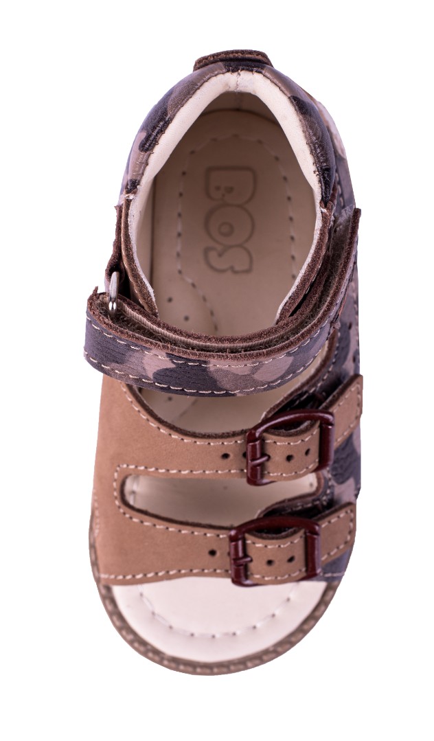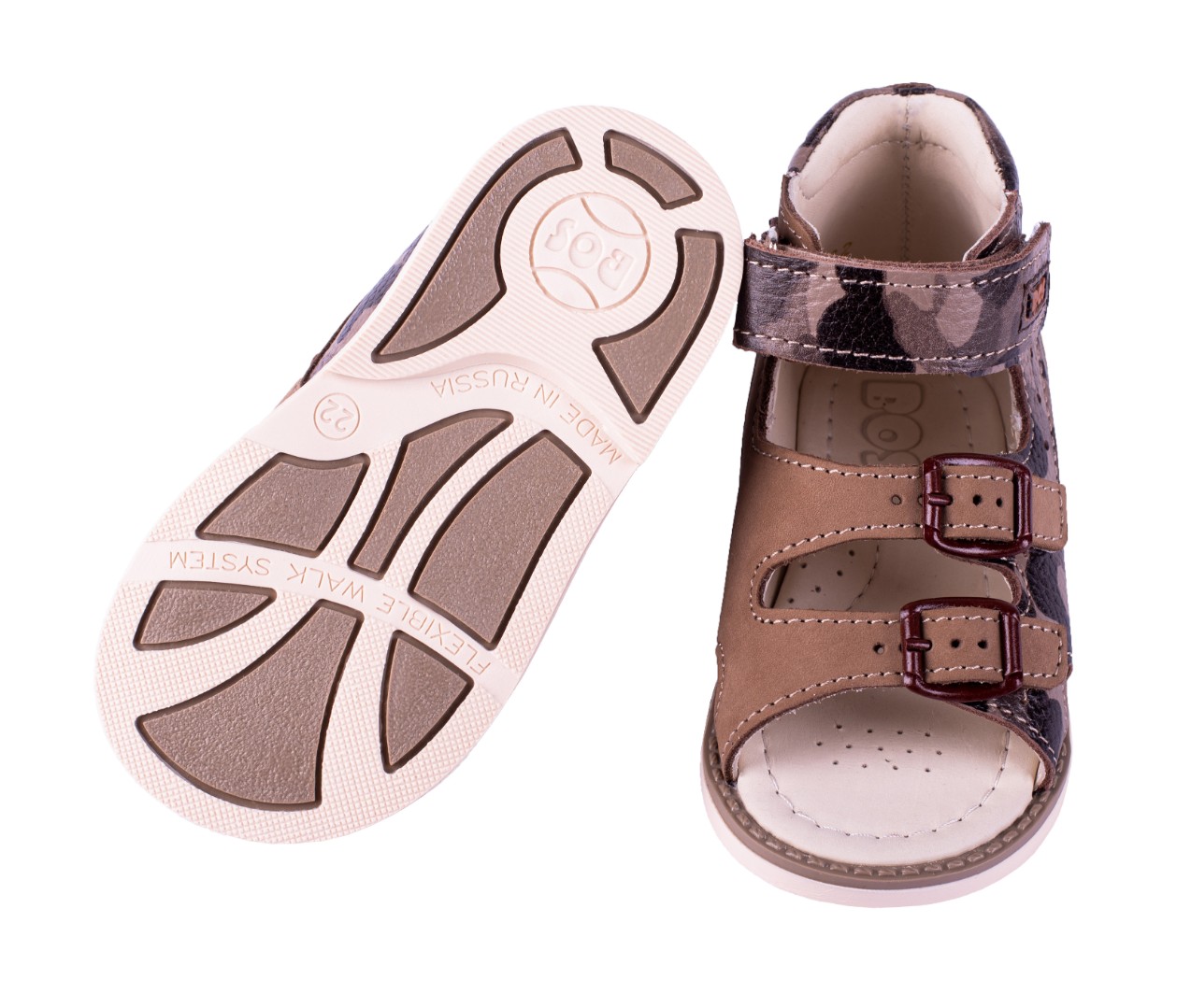 Сандалии для профилактики плоскостопия и плосковальгусной установки стоп. Широкий, устойчивый каблук специальной конфигурации - каблук Томаса. Каблук продлен с внутренней стороны до середины стопы, чтобы исключить заваливание стопы вовнутрь, так называемая косолапость, или вальгусная деформация. Анатомическая стелька с супинатором для правильного формирования свода стопы. Задник максимальной жесткости с удлиненным крылом надежно стабилизирует голеностопный сустав во время ходьбы. Упругая, умеренно-эластичная подошва, имеющая перекат, позволяет повторить естественное движение стопы при ходьбе для правильного распределения нагрузки на опорно-двигательный аппарат ребенка.