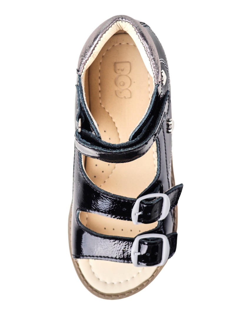 Ортопедические сандалии для профилактики и коррекции плоскостопия и плосковальгусной установки стоп. Широкий, устойчивый каблук специальной конфигурации - каблук Томаса. Каблук продлен с внутренней стороны до середины стопы, чтобы исключить заваливание стопы вовнутрь, так называемая косолапость, или вальгусная деформация. Анатомическая стелька с супинатором для правильного формирования свода стопы. Задник максимальной жесткости с удлиненным крылом надежно стабилизирует голеностопный сустав во время ходьбы. Упругая, умеренно-эластичная подошва, имеющая перекат, позволяет повторить естественное движение стопы при ходьбе для правильного распределения нагрузки на опорно-двигательный аппарат ребенка.