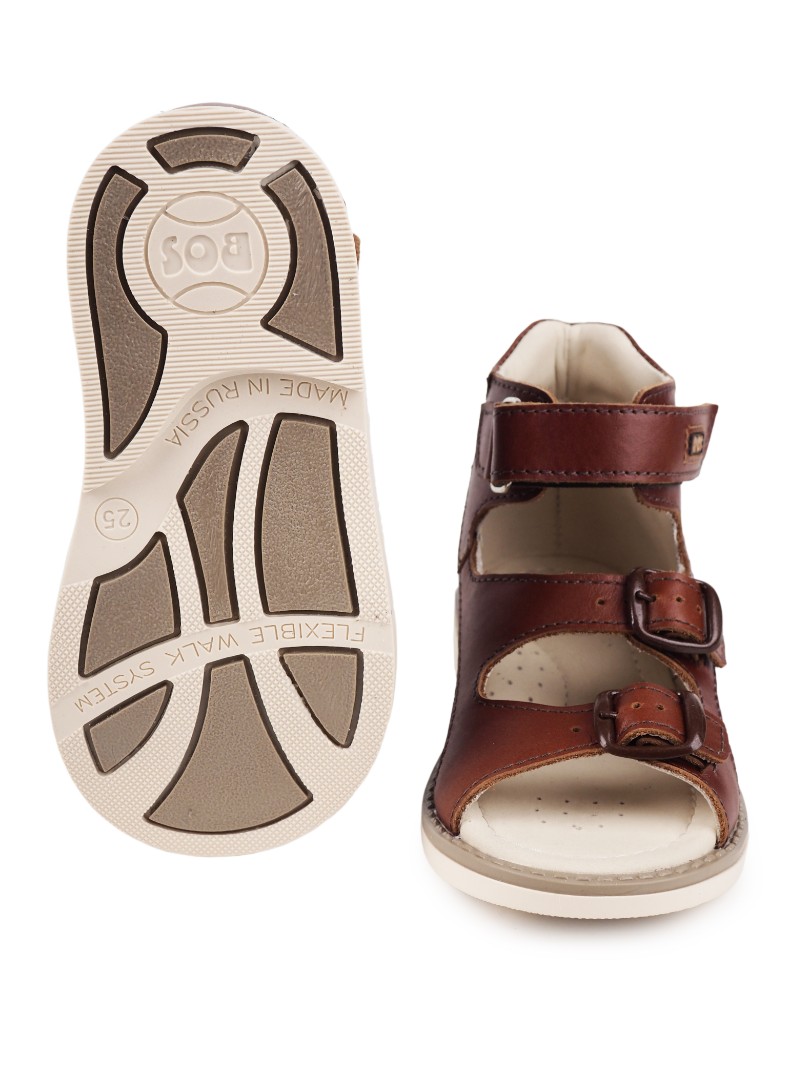 Сандалии для профилактики плоскостопия и плосковальгусной установки стоп. Широкий, устойчивый каблук специальной конфигурации - каблук Томаса. Каблук продлен с внутренней стороны до середины стопы, чтобы исключить заваливание стопы вовнутрь, так называемая косолапость, или вальгусная деформация. Анатомическая стелька с супинатором для правильного формирования свода стопы. Задник максимальной жесткости с удлиненным крылом надежно стабилизирует голеностопный сустав во время ходьбы. Упругая, умеренно-эластичная подошва, имеющая перекат, позволяет повторить естественное движение стопы при ходьбе для правильного распределения нагрузки на опорно-двигательный аппарат ребенка.