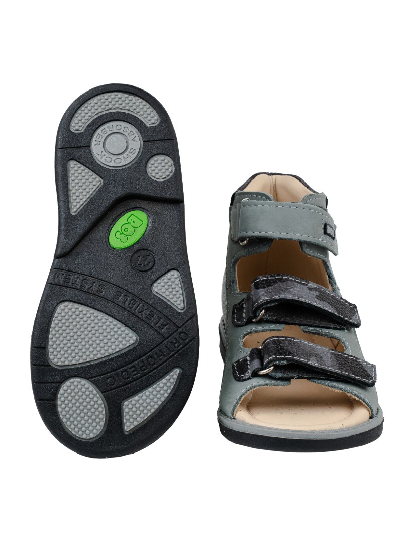 Сандалии для профилактики плоскостопия и плосковальгусной установки стоп. Широкий, устойчивый каблук специальной конфигурации - каблук Томаса. Каблук продлен с внутренней стороны до середины стопы, чтобы исключить заваливание стопы вовнутрь, так называемая косолапость, или вальгусная деформация. Анатомическая стелька с супинатором для правильного формирования свода стопы. Задник максимальной жесткости с удлиненным крылом надежно стабилизирует голеностопный сустав во время ходьбы. Упругая, умеренно-эластичная подошва, имеющая перекат, позволяет повторить естественное движение стопы при ходьбе для правильного распределения нагрузки на опорно-двигательный аппарат ребенка.
