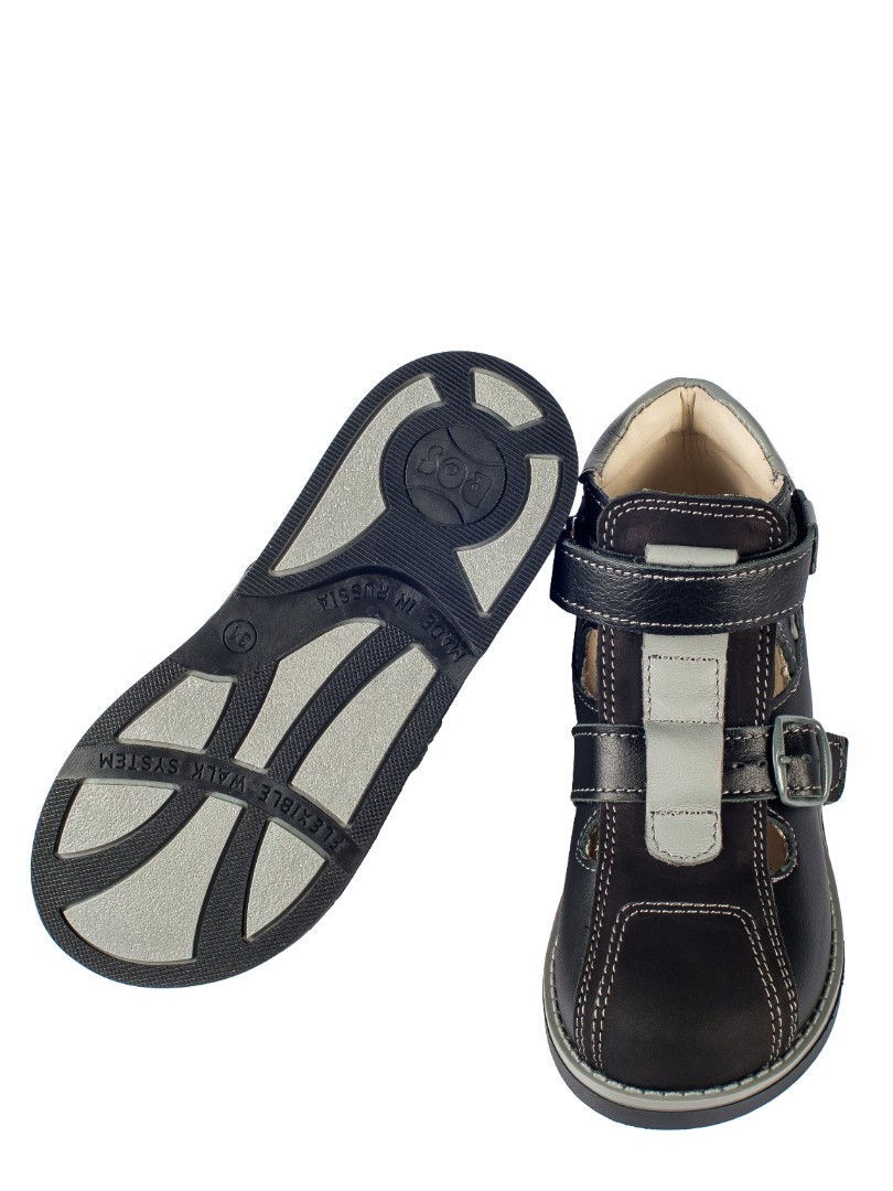 Упругая подошва изготавливается из нескользящего материала. В передней части предусмотрен искусственный физиологический перекат, отвечающий за помощь в формировании естественной походки. Дополнительно подошва оснащена удлинённым внутренним краем каблука - он препятствует заваливанию стопы внутрь.